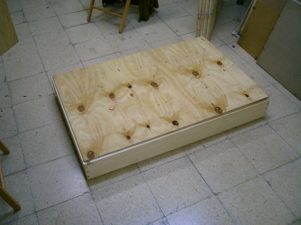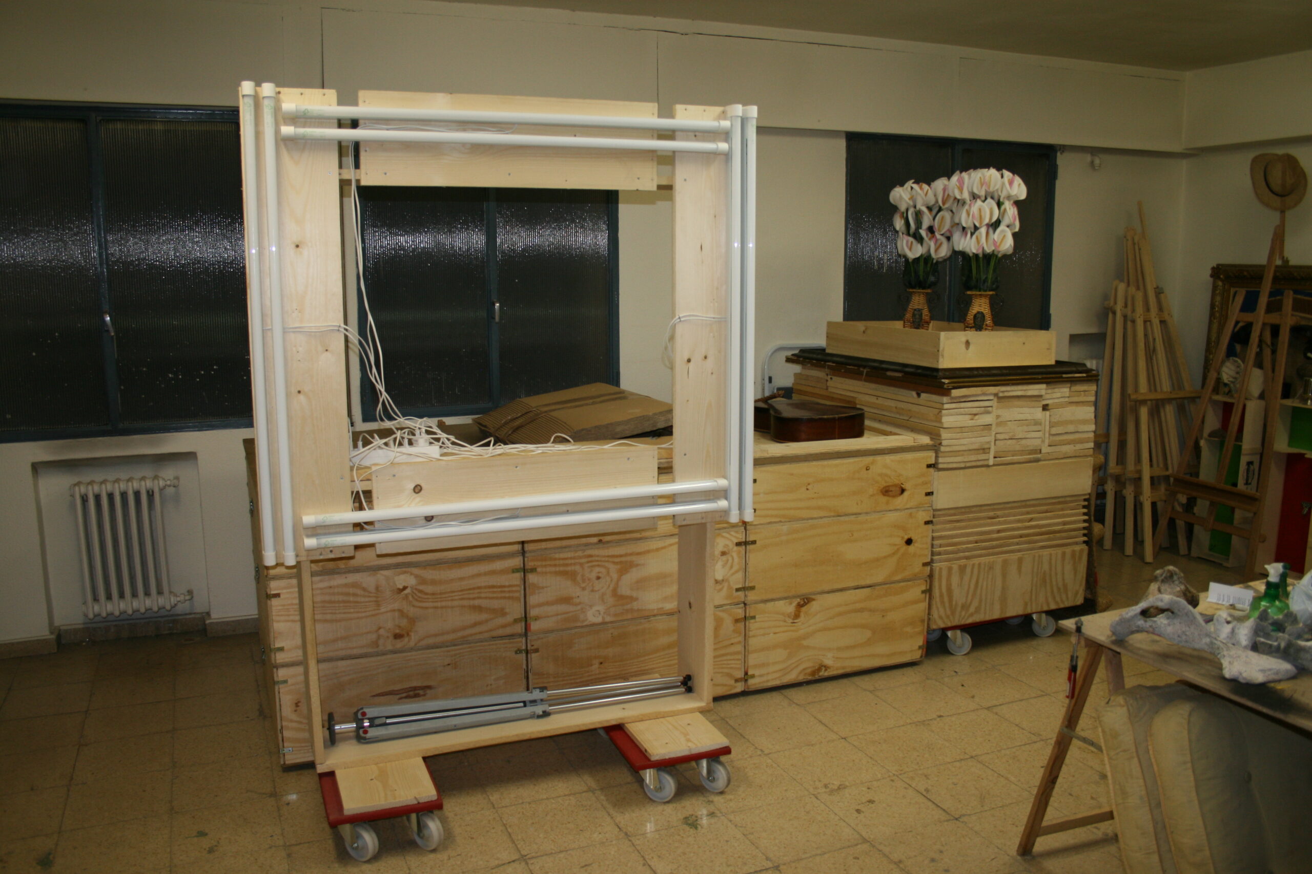 Estas dos obras fueron las que tomaron parte en estado inacabado en la mudanza de mi estudio de Malasaña al sótano de nuestra casa en la calle Viriato, en el barrio de Chamberí, en el verano de 2010. El traslado me supuso varias ventajas: por un lado tenía que recorrer un camino muy corto hasta mi estudio y, además, me proporcionaba una sala adicional para guardar mis obras y otra más para realizar fotografías. En esas habitaciones también había suficiente espacio para colgar parte de mis obras con lo que en diciembre de 2010 pude invitar de nuevo a mis amigos para un vernissage de estudio
