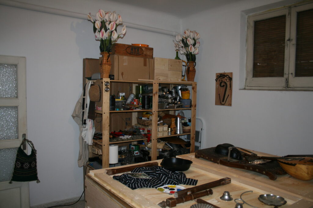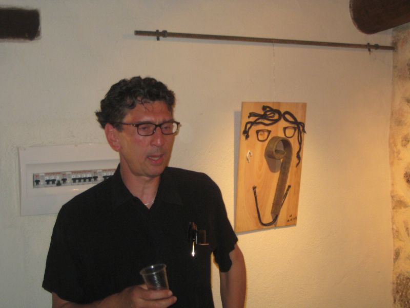 En 6 meses nacieron más de 30 obras realizadas mayoritariamente a partir de objetos que había encontrado o comprado en los últimos cinco años. Así pude emplear para “Gallo” las hoces compradas en 2002. También nació la “cover version” de “Naturaleza muerta con exprimidor de ajos” de Diego Rivera. Y utilicé para “Geisha” el descamador de pescado, comprado en el mercado del pescado de Tokio en 2005. Todos los cubos de metal pudieron ahora cumplir su finalidad: la representación de los pechos femeninos. Di uso al gancho de hierro colado de 11 kg. que encontré en el puerto de Reikiavik para crear el “Marinero”. Los moldes con forma de conejos, el descalzador de botas y el rastrillo de jardín hallaron su destino en “Bosque” y así mismo utilicé los moldes de horno, con forma de pera, para el cuadro “Bañistas”.