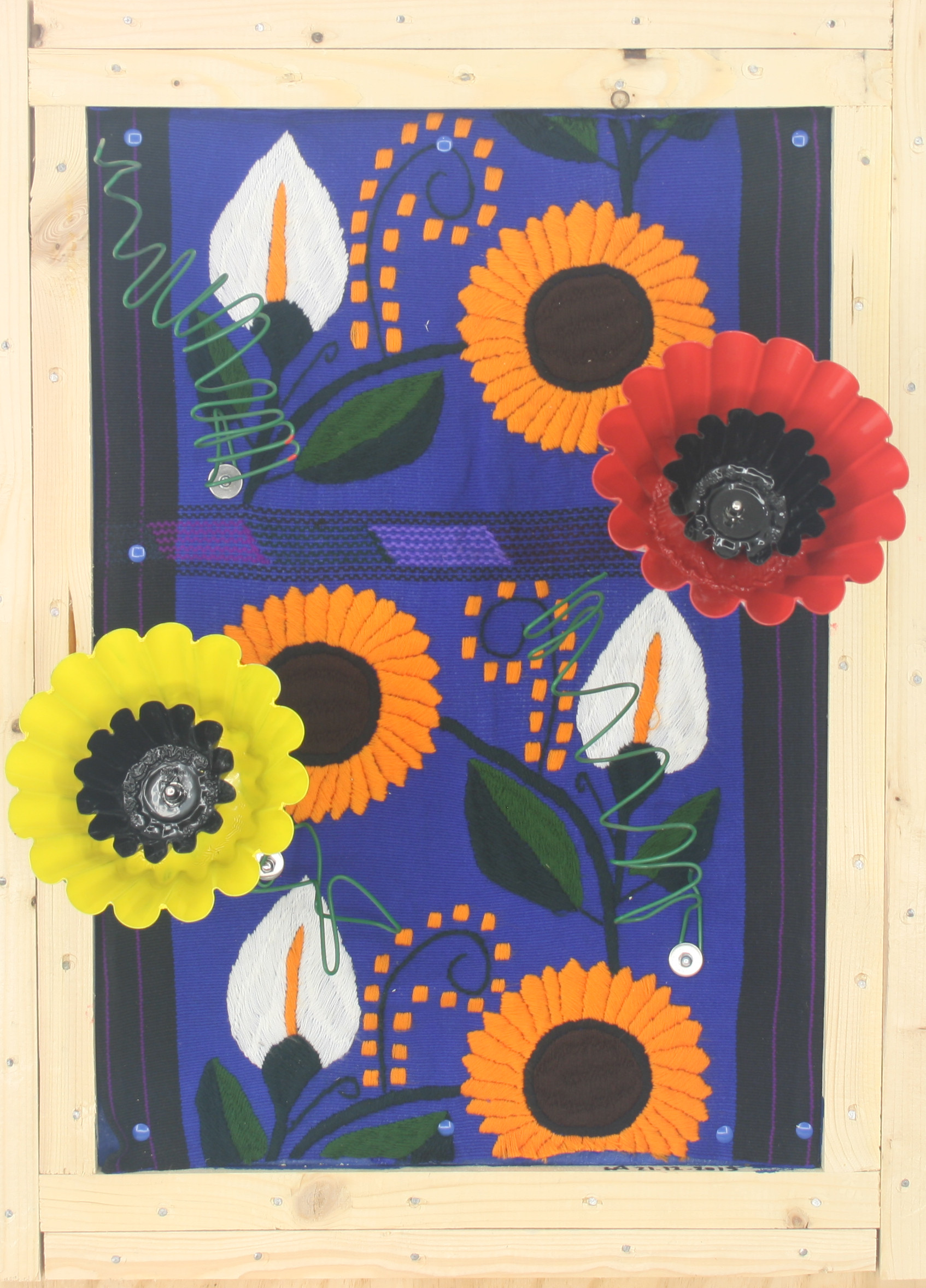 Tabla, camino de mesa, malla metálica, torteras, flaneros