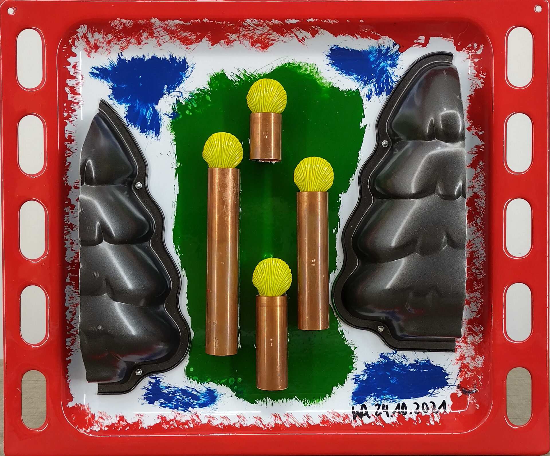 Bandeja de horno, molde de torta partido en dos trozos, 4 tubos, 4 tiradores