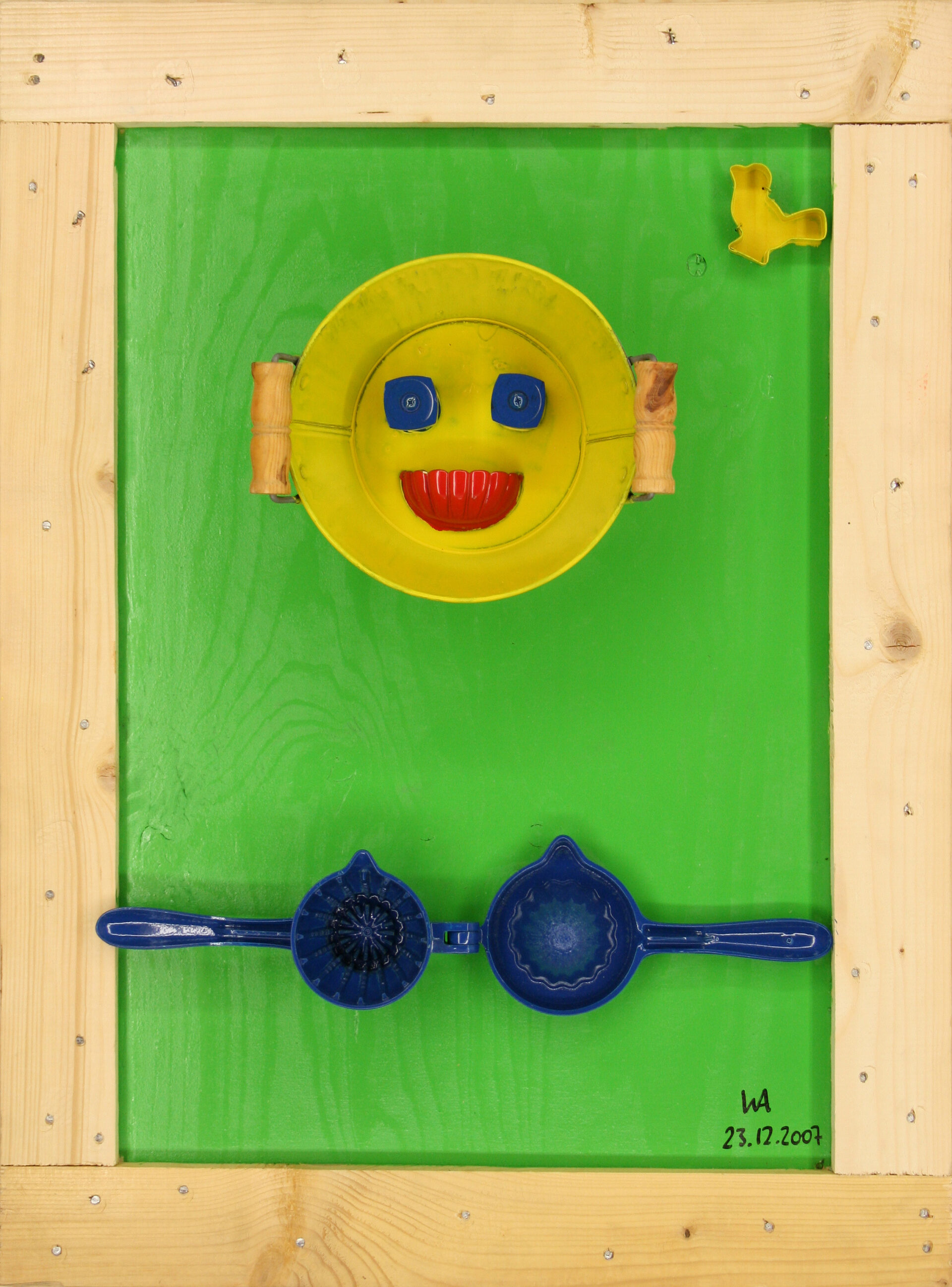 Tabla, fuente, grifos de calefacción, exprimidor de limón, molde de galletas