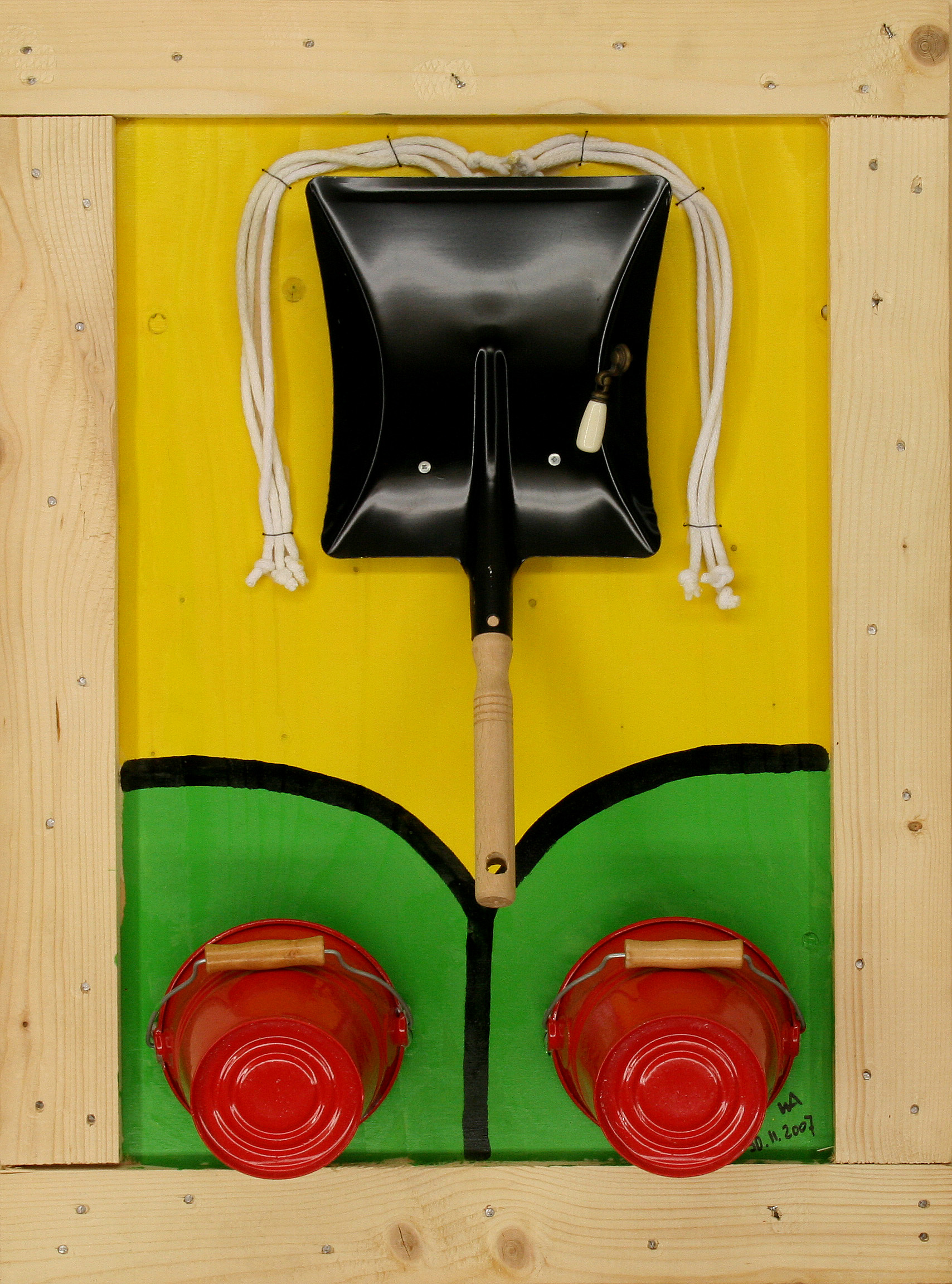 Tabla, recogedor metálica, cubos, cuerdas