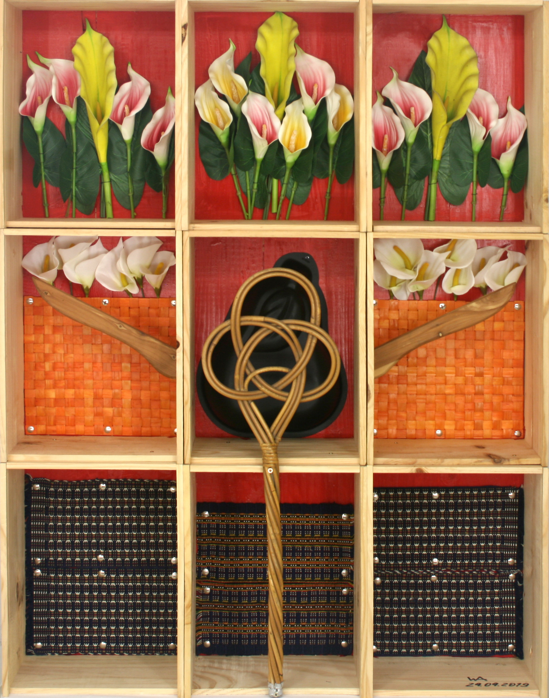 Cajas de vino de madera, calas artificiales, molde de pera, salvamanteles, percha de madera, sacudidor de alfombras