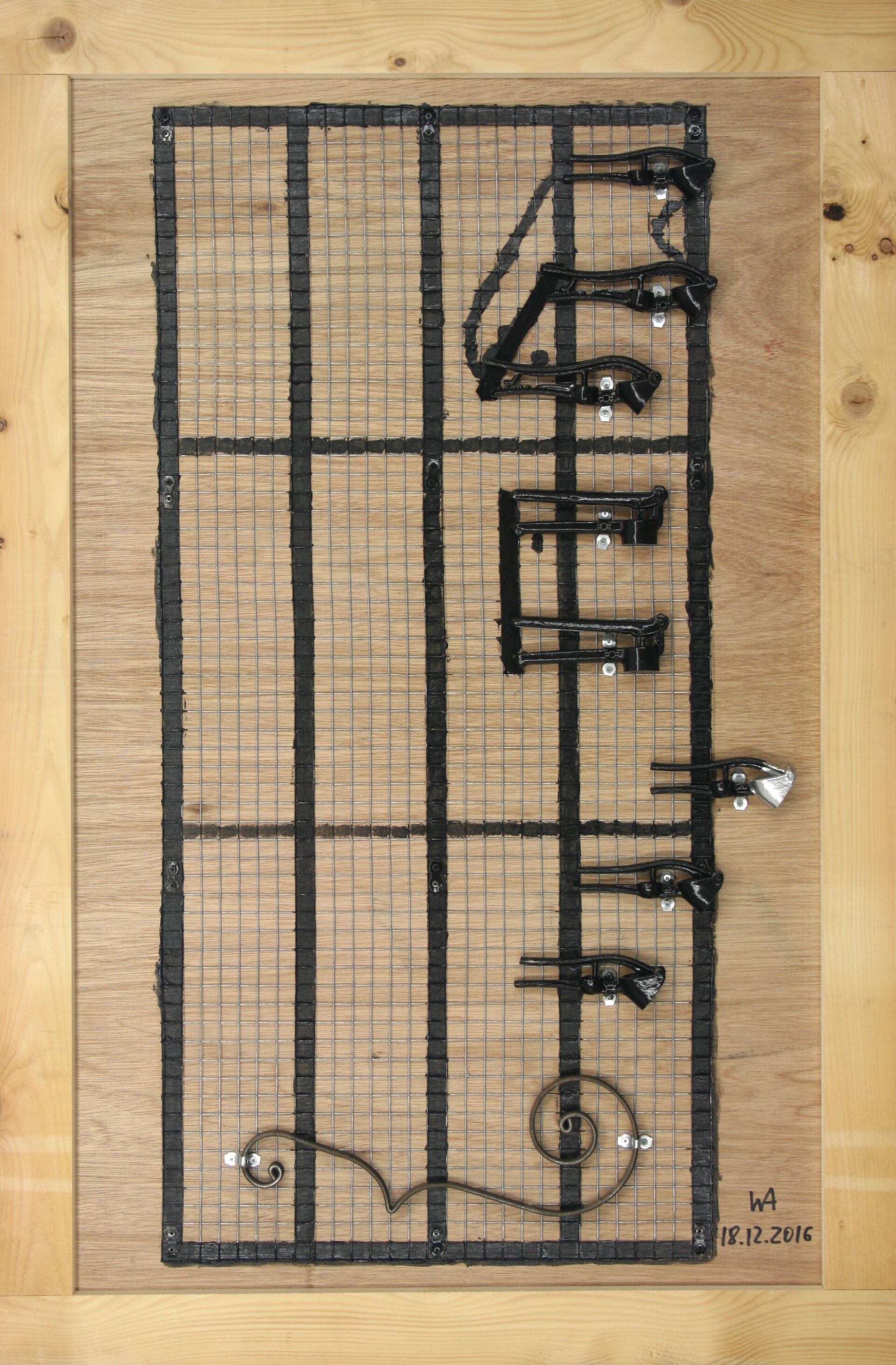 Tabla, malla de alambre, exprimidoras de ajos, adorno de barandilla