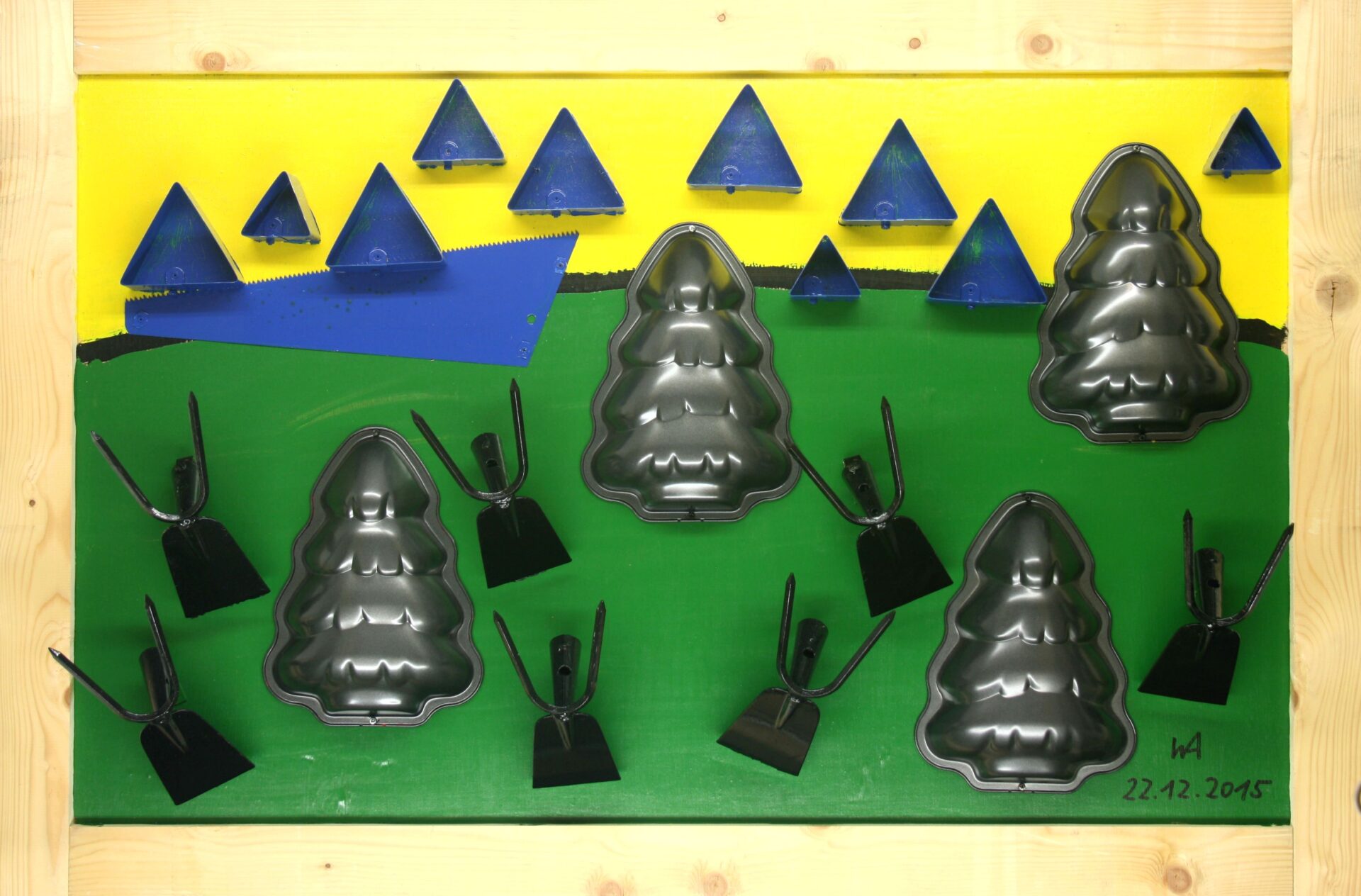 Tabla, rastrillos, moldes, hoja de sierra, moldes triangulares