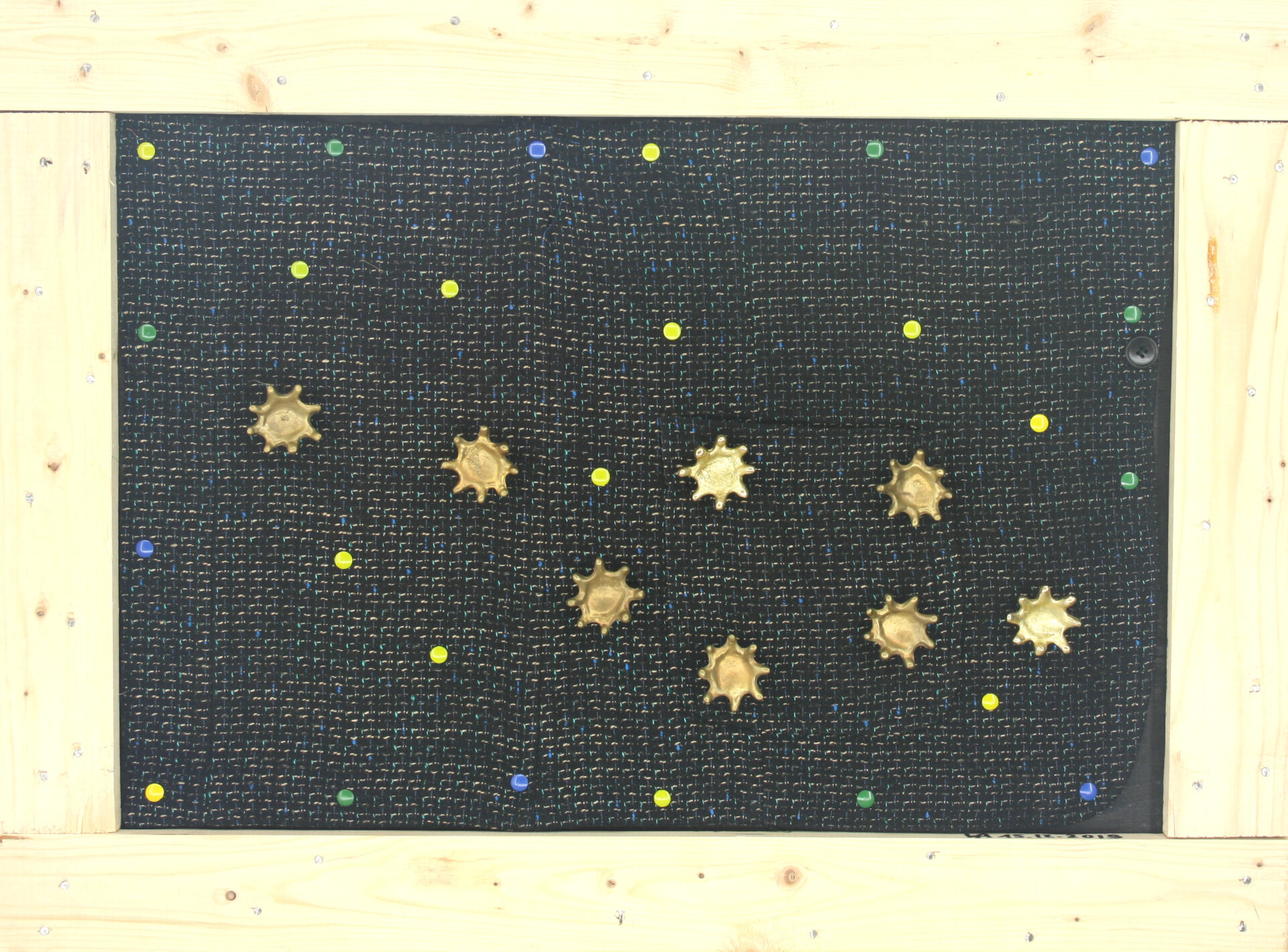 Tabla, trozo de una chaqueta, tiradores, chinchetas