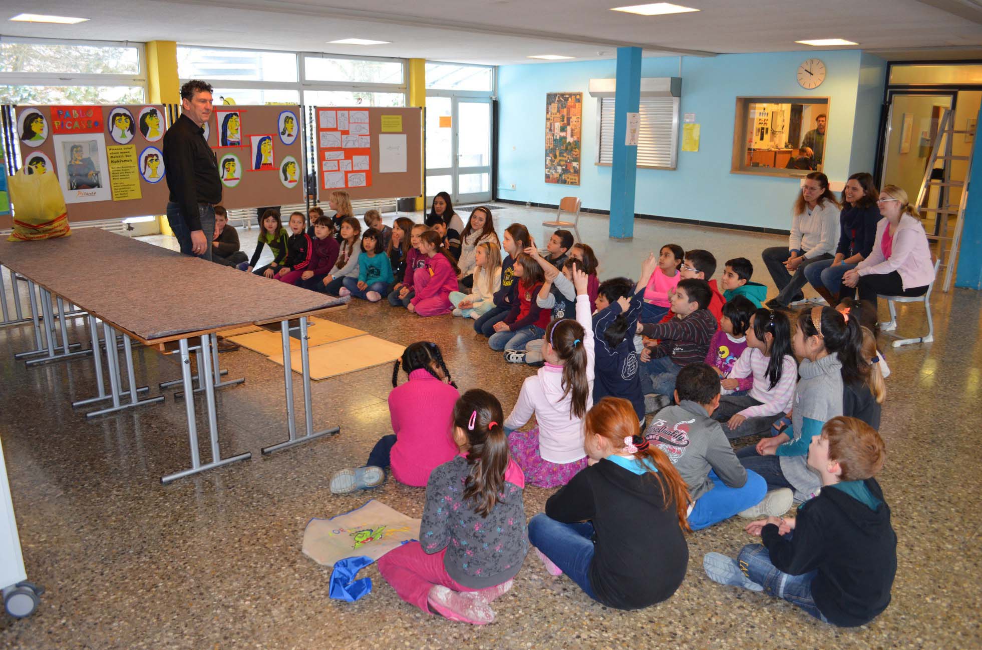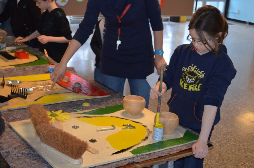 Exactamente de esa fantasía se trataba cuando me invitaron del colegio de educación primaria Neuperlach de Múnich a organizar una mañana artística con 40 niños de 9 y 10 años.